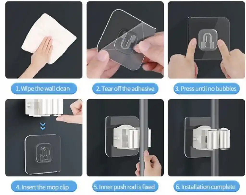 1 Adet Yapışkanlı Pratik Mop Tutucu Beyaz
