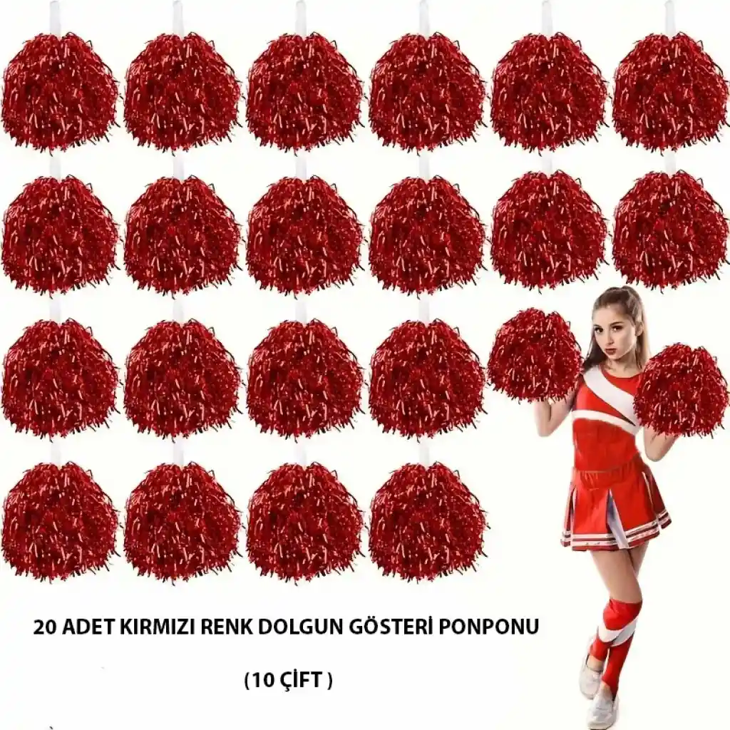 10 Çift ( 20 Adet ) Kırmızı Renk 23 Nisan 19 Mayıs 29 Ekim Okul Gösteri Ponponları