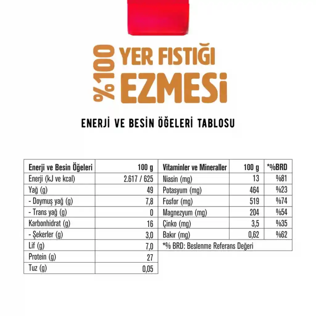 %100 Yer Fıstığı Ezmesi 315 Gr
