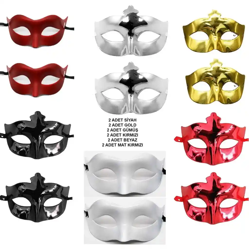 • 12’li Renkli Parti Maskesi Seti – Siyah, Gold, Gümüş, Kırmızı, Beyaz, Mat Kırmızı