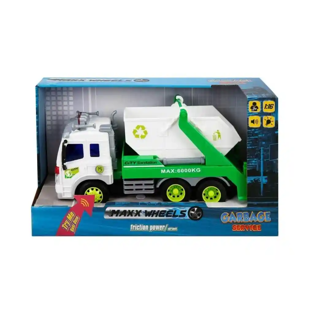 13078 1:16 Maxx Wheels Sesli ve Işıklı Geri Dönüşüm Kamyonları