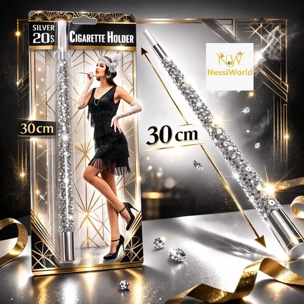 30 cm Gümüş Payetli Sigara Tutacağı – 1920’ler Gatsby Parti Aksesuarı