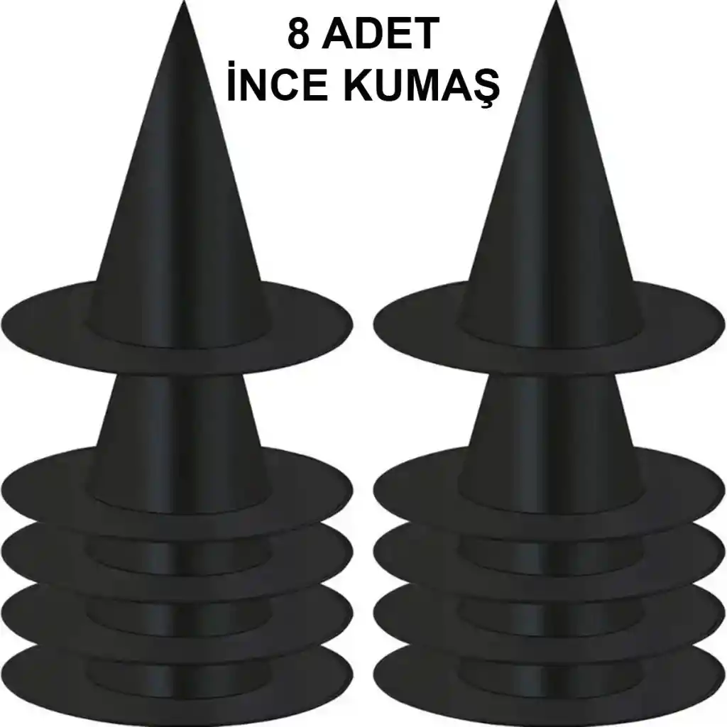 8 Adet Siyah Cadı Şapkası – Yetişkin & Çocuk Kostüm ANessiWorldesuarı