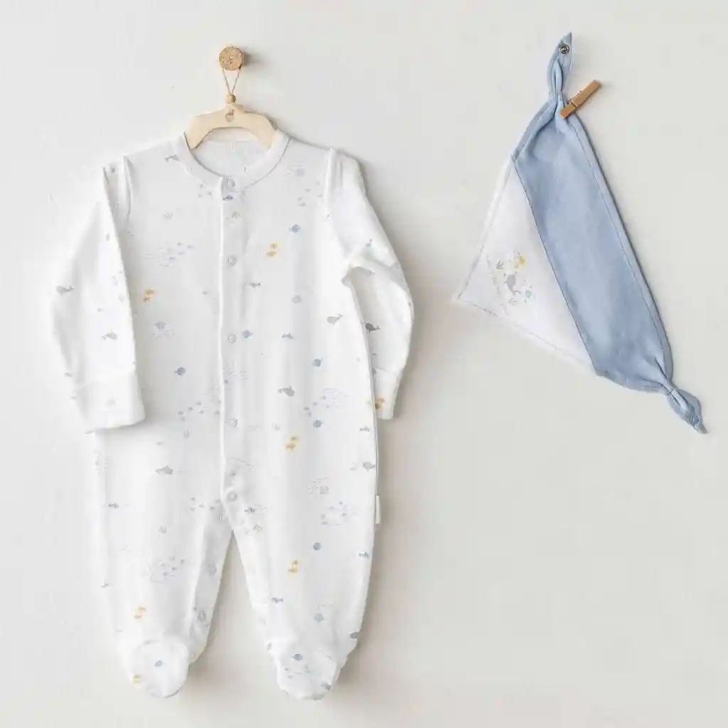 AC25607 Ocean İs My Happy Place Bebek Tulum Takım White