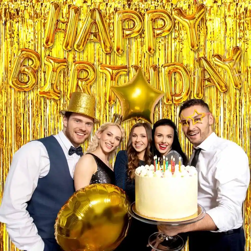 Altın Gold Renk Ekstra Metalize Parlak Saçaklı Arka Fon Perde İthal A Kalite 1x2 Metre NessiWorld