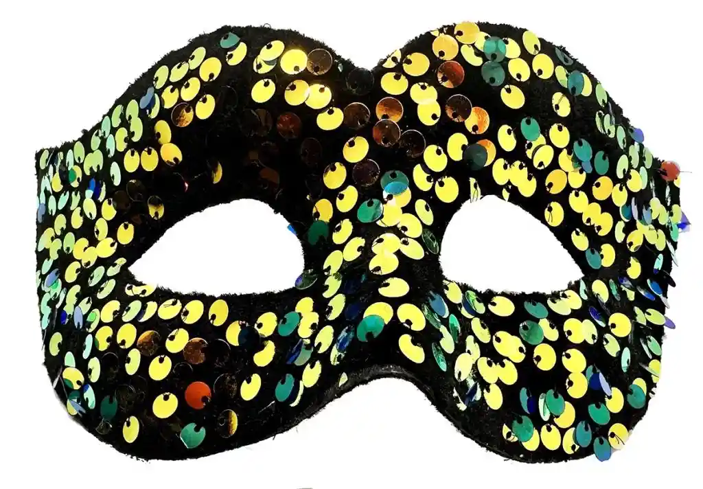 Altın Renk Arkadan Lastikli Pul Payet İşlemeli Balo After Parti Maskesi