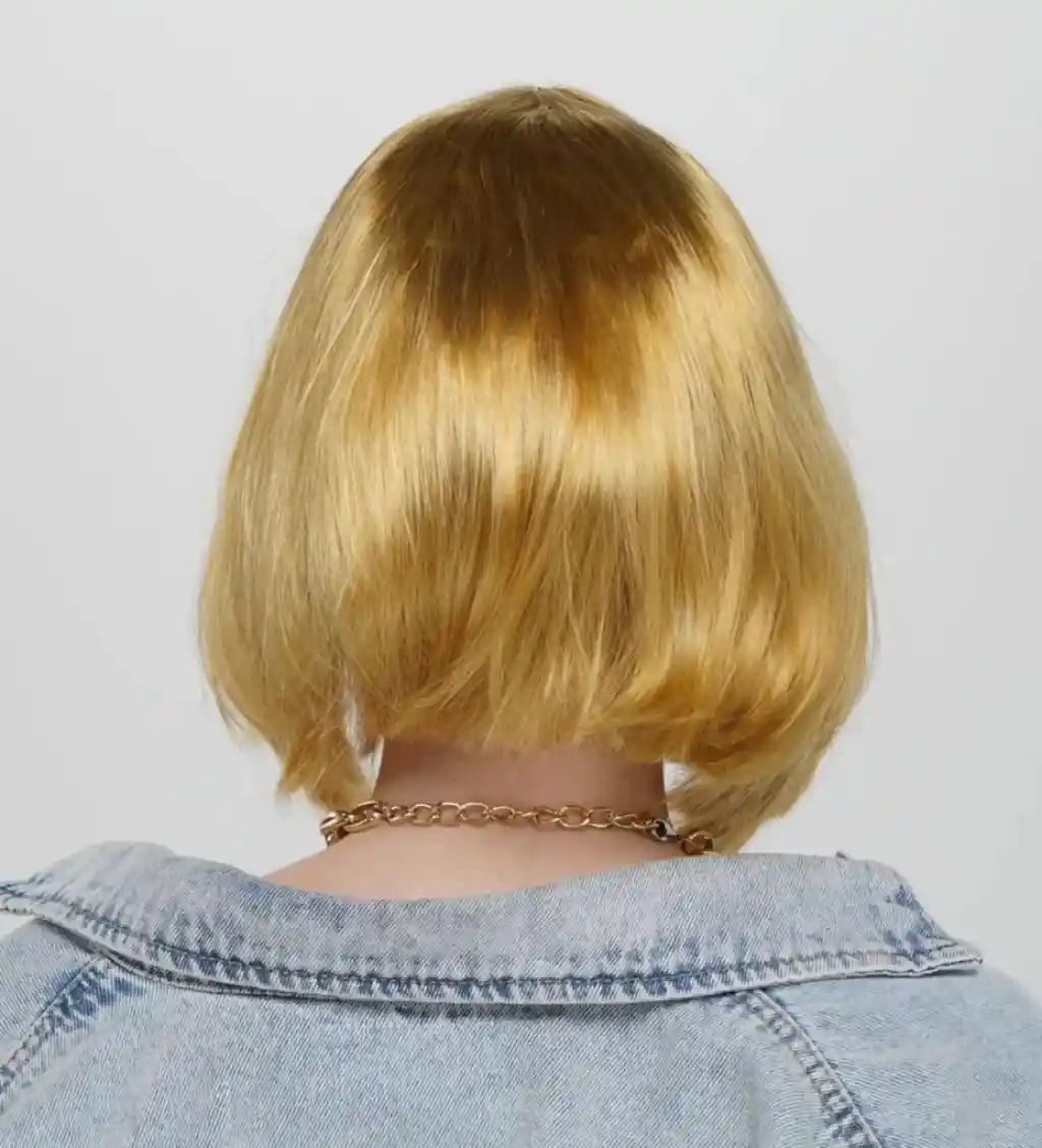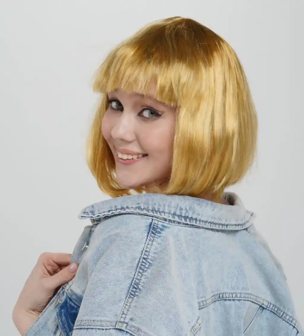 Altın Renk Düz Kesim Küt Parti Peruğu Kısa Takma Saç