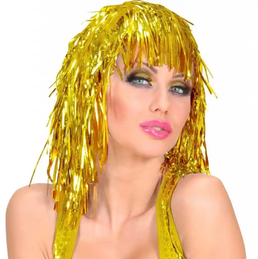• Altın Sarısı Işıltılı Metalize Parti Peruğu