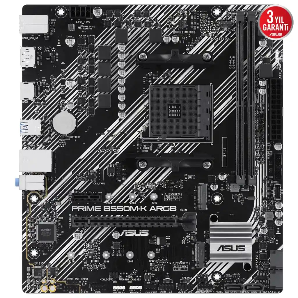 ASUS PRIME B550M-K ARGB B550 4xDDR4 DP/HDMI 2xM.2 AM4 ANAKART