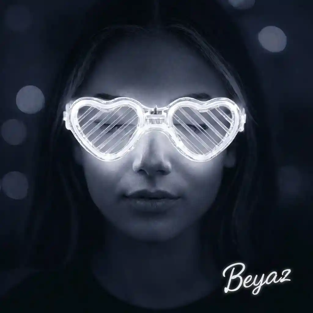 • Beyaz LED Işıklı Kalp Gözlük – 3 Modlu Parti &