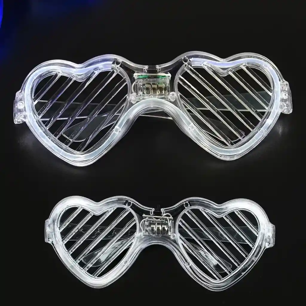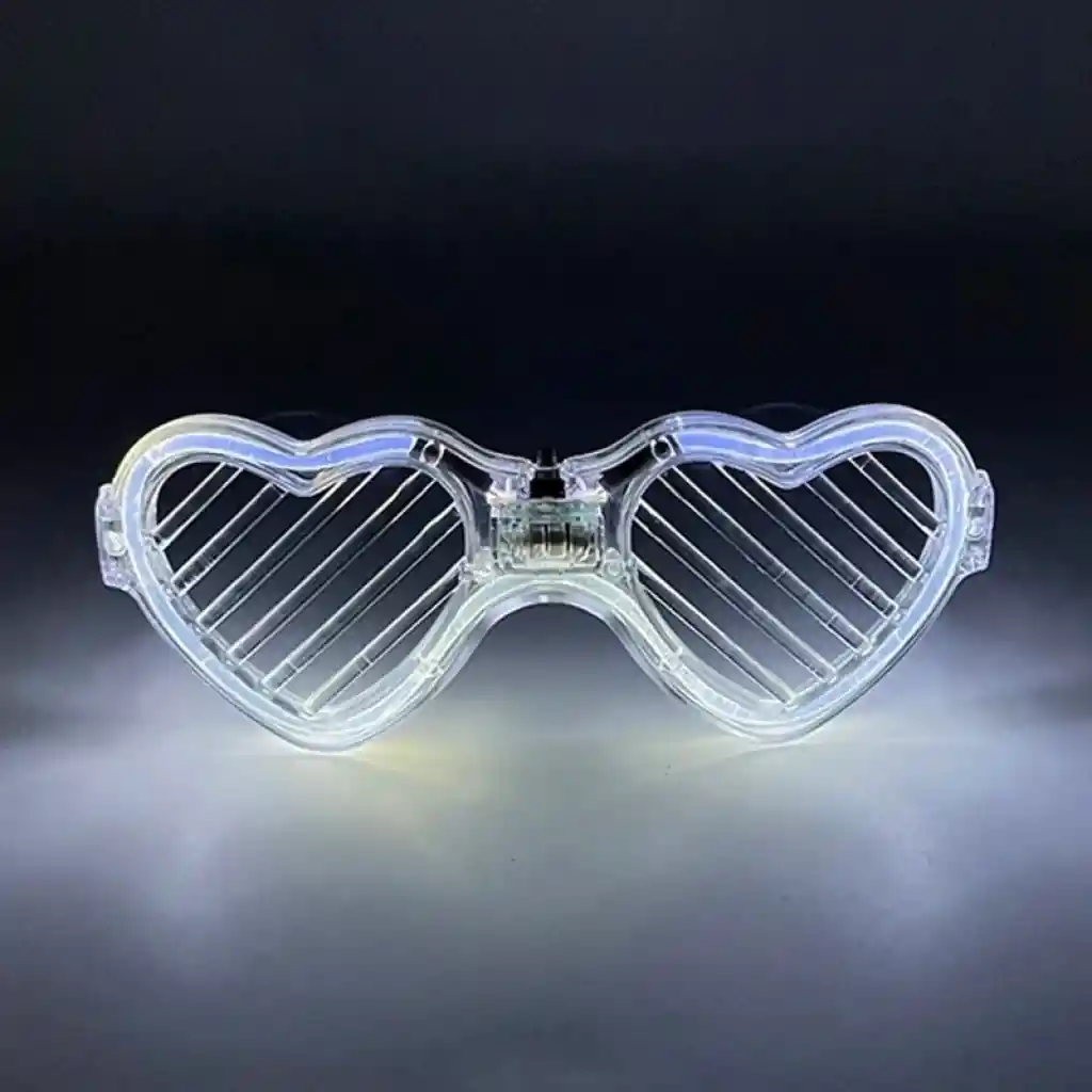 Beyaz LED Işıklı Kalp Gözlük – 3 Modlu Parti &