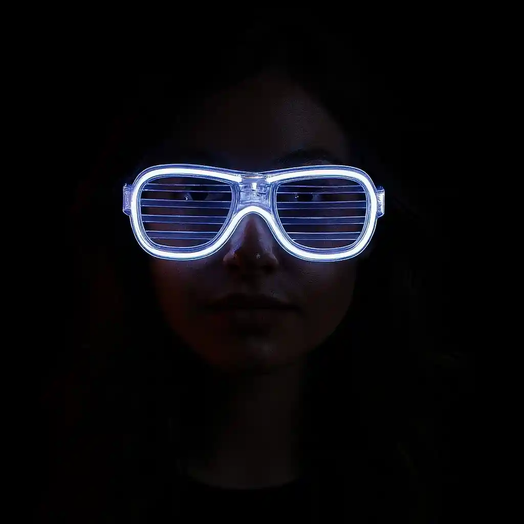 Beyaz Led Işıklı Parti Gözlüğü - Neon Glow Şerit Gözlük 3 Modlu