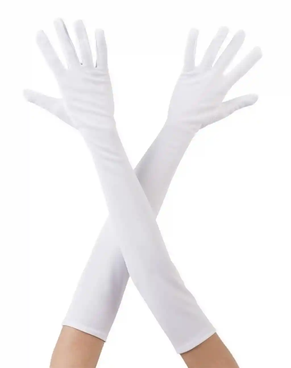 • Beyaz Renk Dirseğe Kadar Uzun Kumaş Eldiven 40 cm
