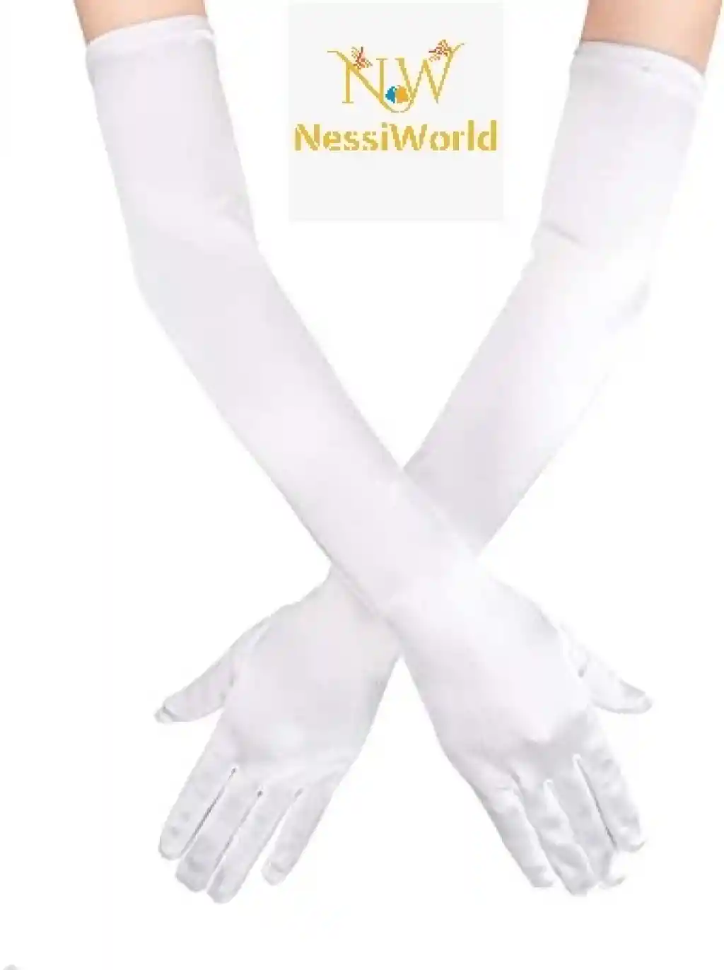Beyaz Renk Dirseğe Kadar Uzun Kumaş Eldiven 40 cm
