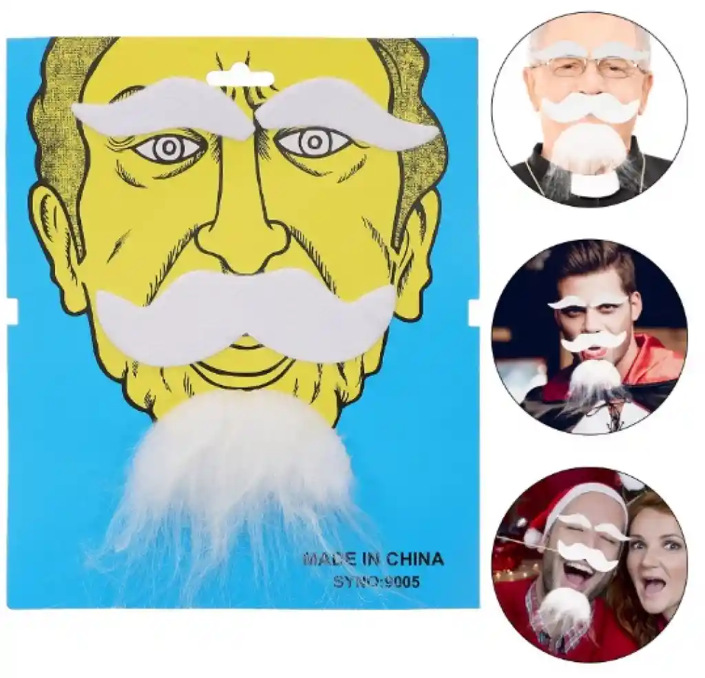 • Beyaz Renk Kendinden Yapışkanlı Takma Sakal Bıyık ve Kaş Seti