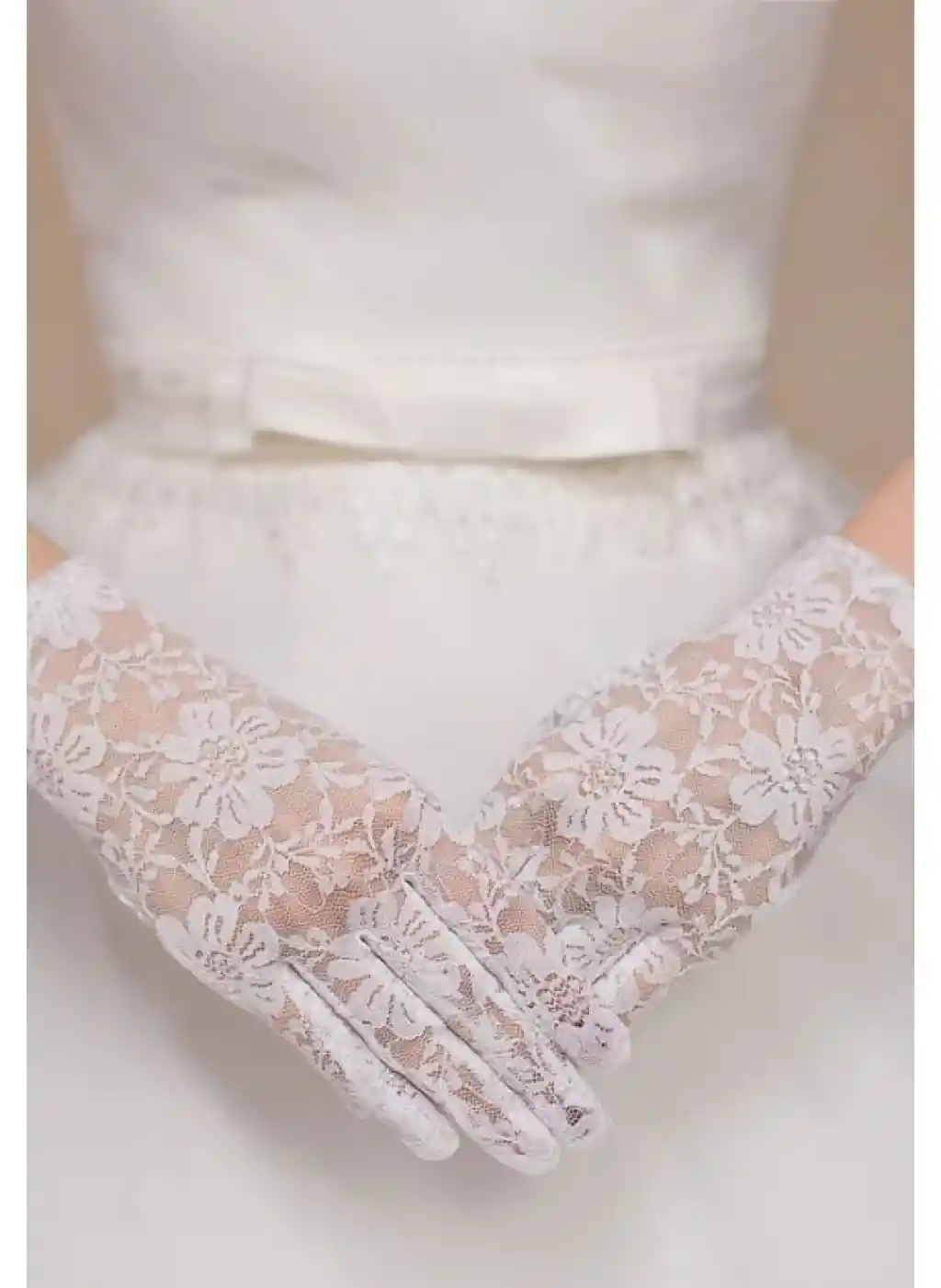 Beyaz Renk Kısa Dantelli Eldiven