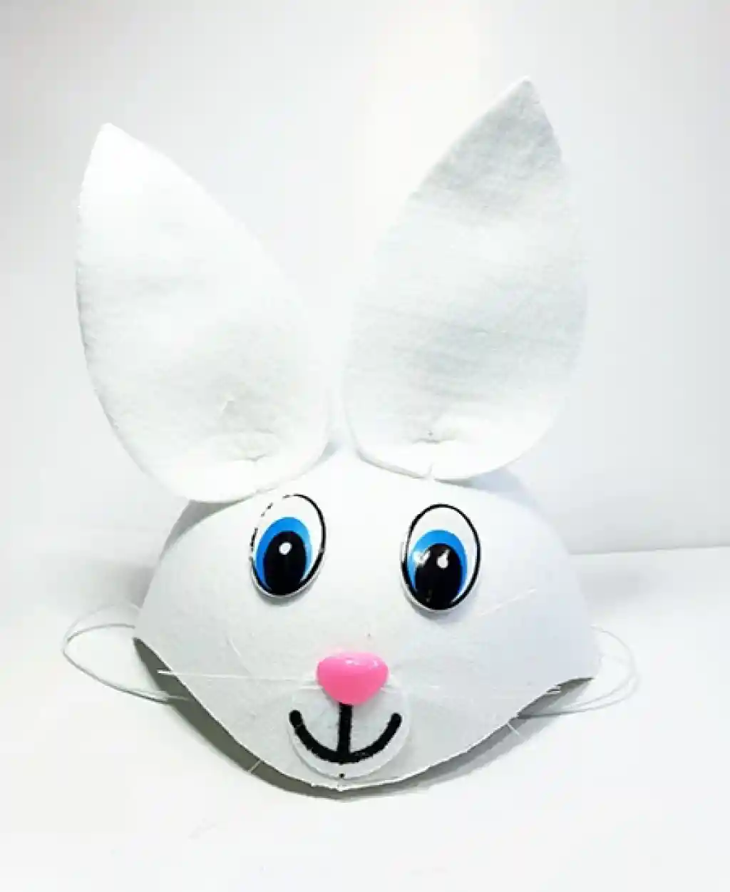 Beyaz Renk Kulaklı Tavşan Şapkası Hayvan Şapkası