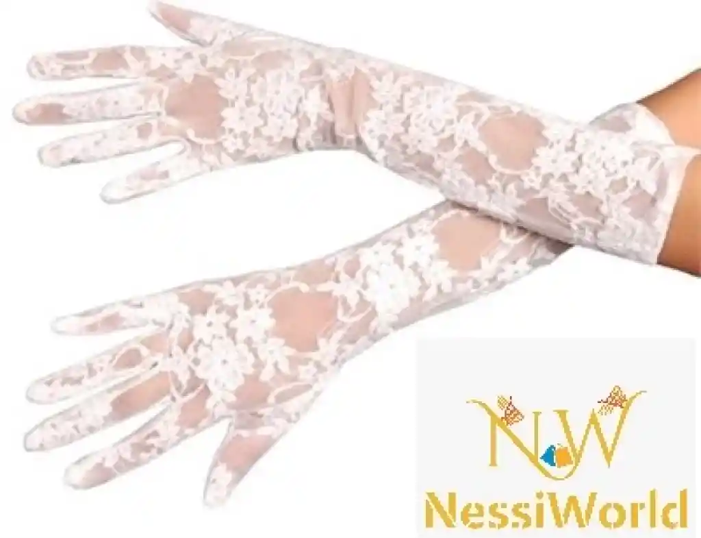 Beyaz Renk Orta Boy Dantelli Eldiven