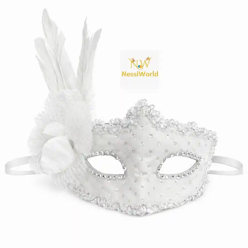 Beyaz Tüylü Venedik Lüks Balo Maskesi