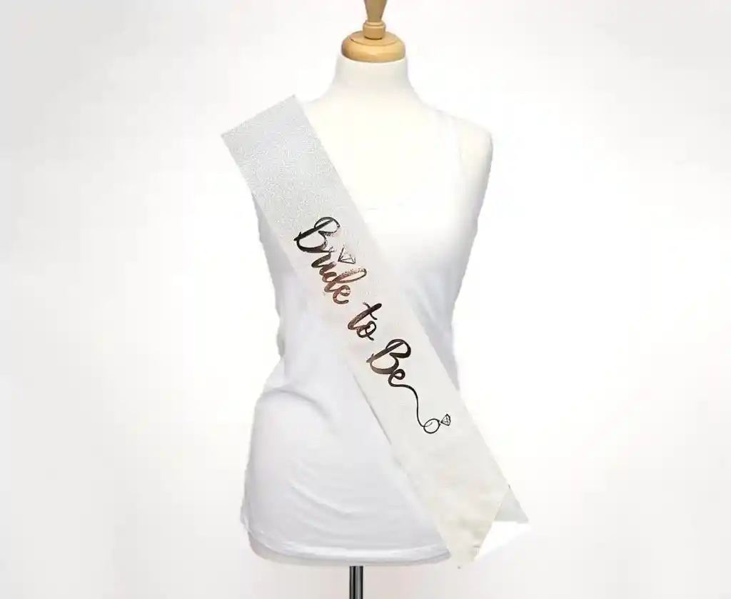 • Beyaz Üzeri Gümüş İtalik Alyanslı Bride To Be Yazılı Simli Işıltılı Kuşak Kemer 10x80 cm