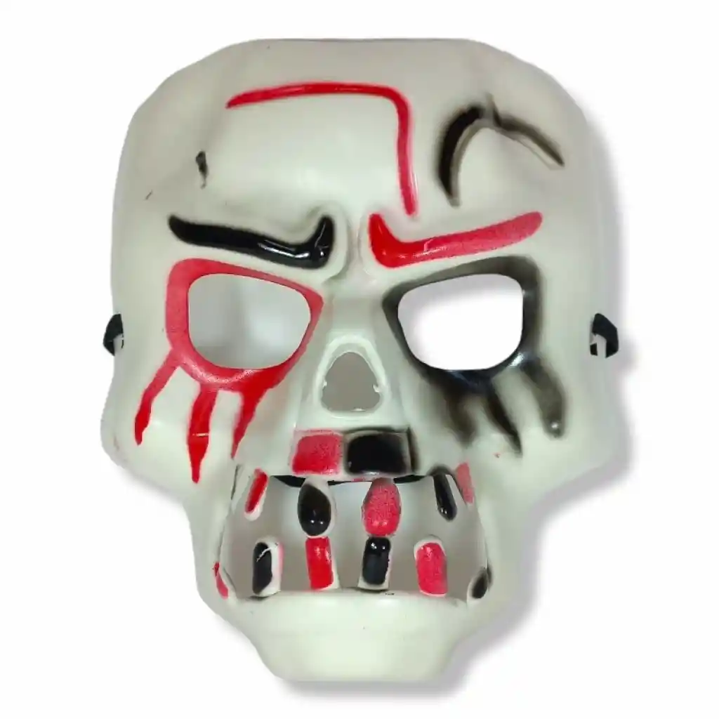 • Beyaz Üzeri Rengarenk Korku Dişli Kafatası Maskesi 30x22 cm