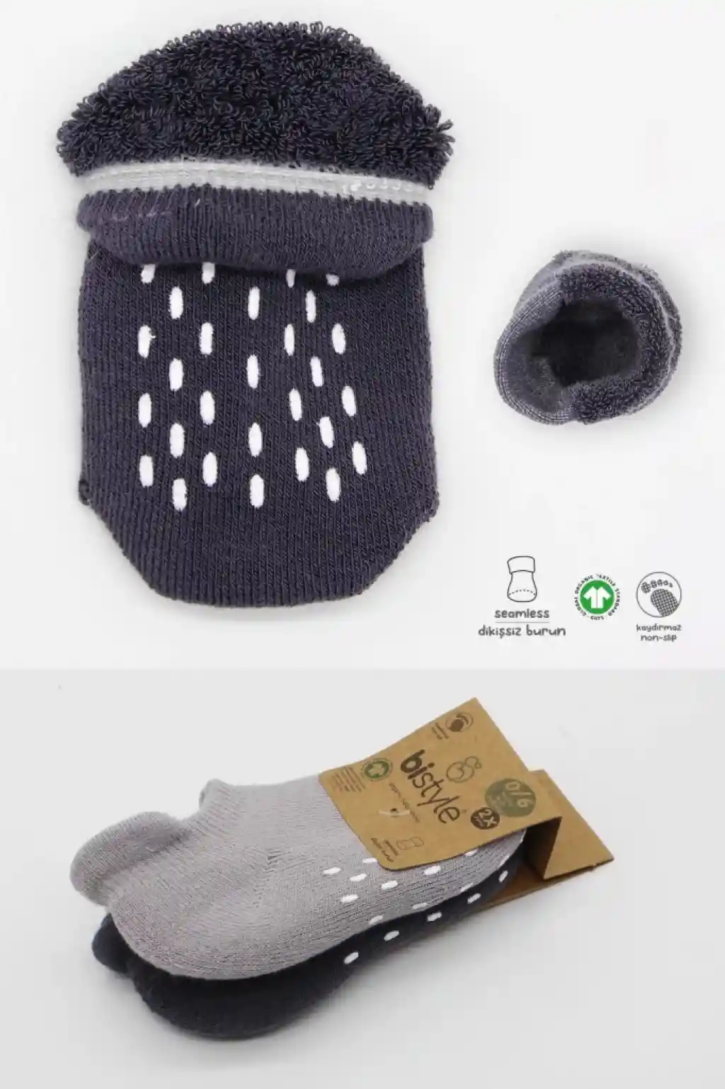 • NessiWorld 2'Li Altı Havlu Sneakers Kaymaz Çorap 20501 Gri-Antrasit