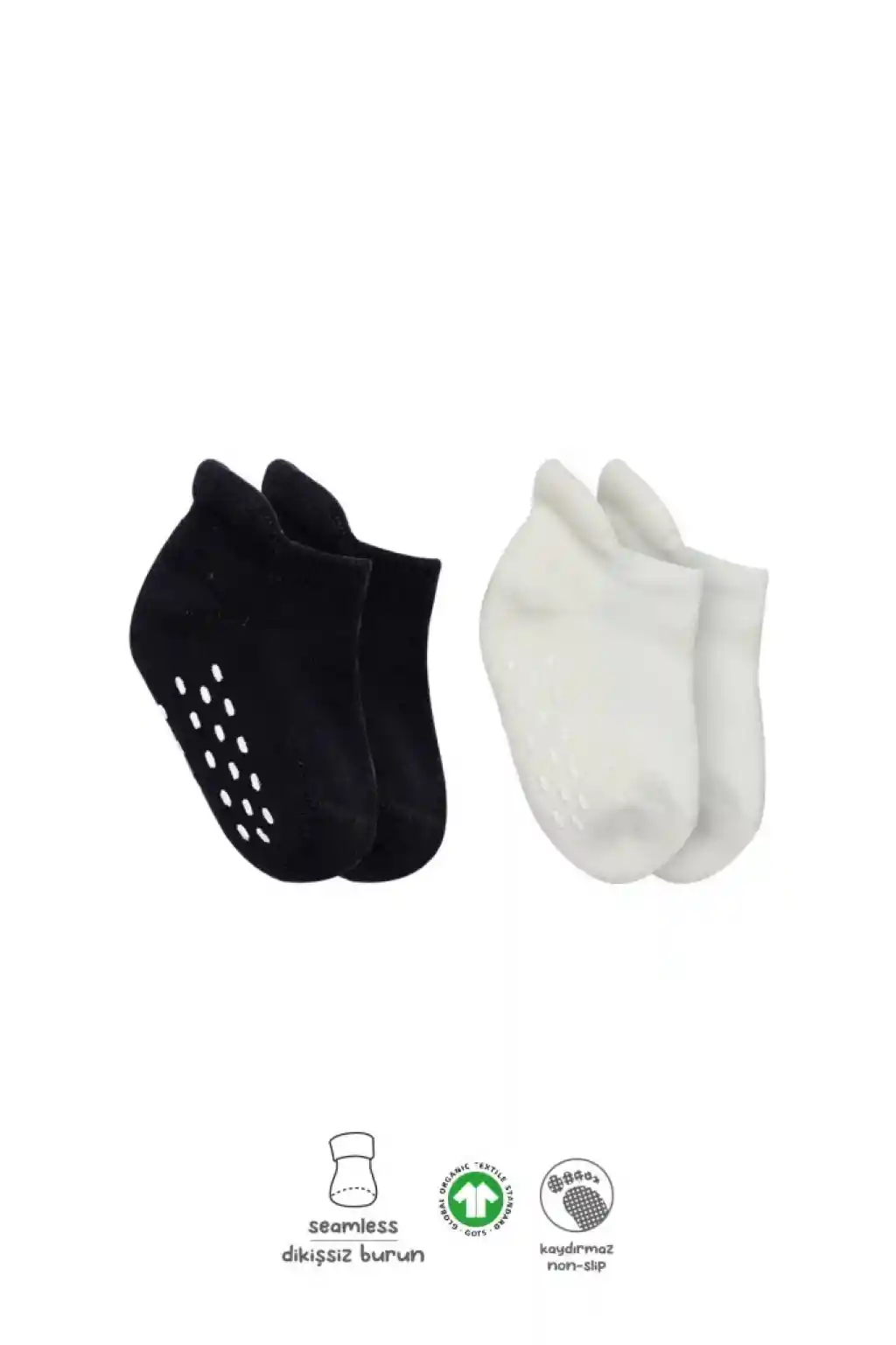 • NessiWorld 2'Li Altı Havlu Sneakers Kaymaz Çorap 20501 Siyah Ekru