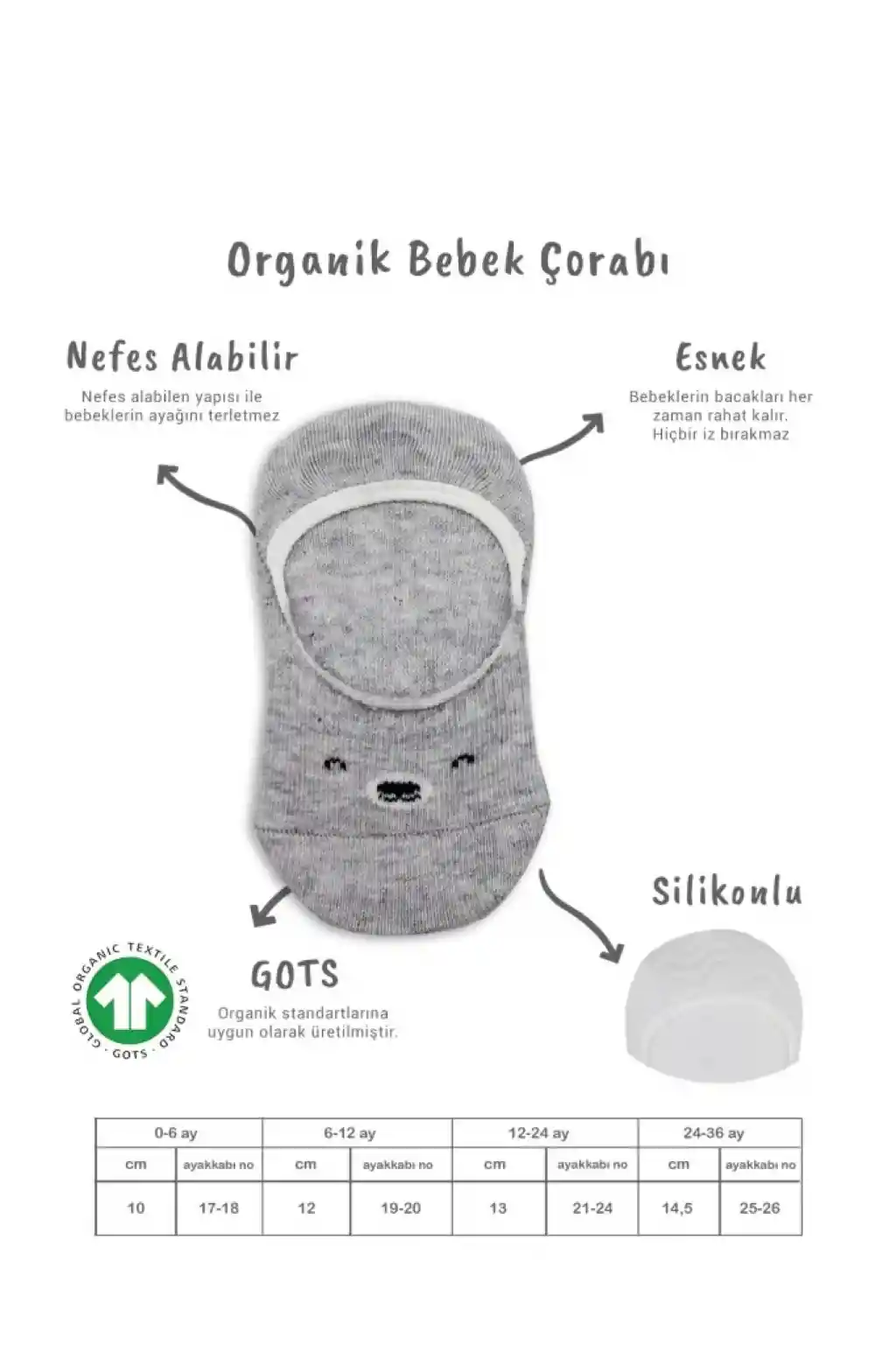 • NessiWorld 2'Li Babet Cute Face Penye Çorap BS30103 Gri Beyaz