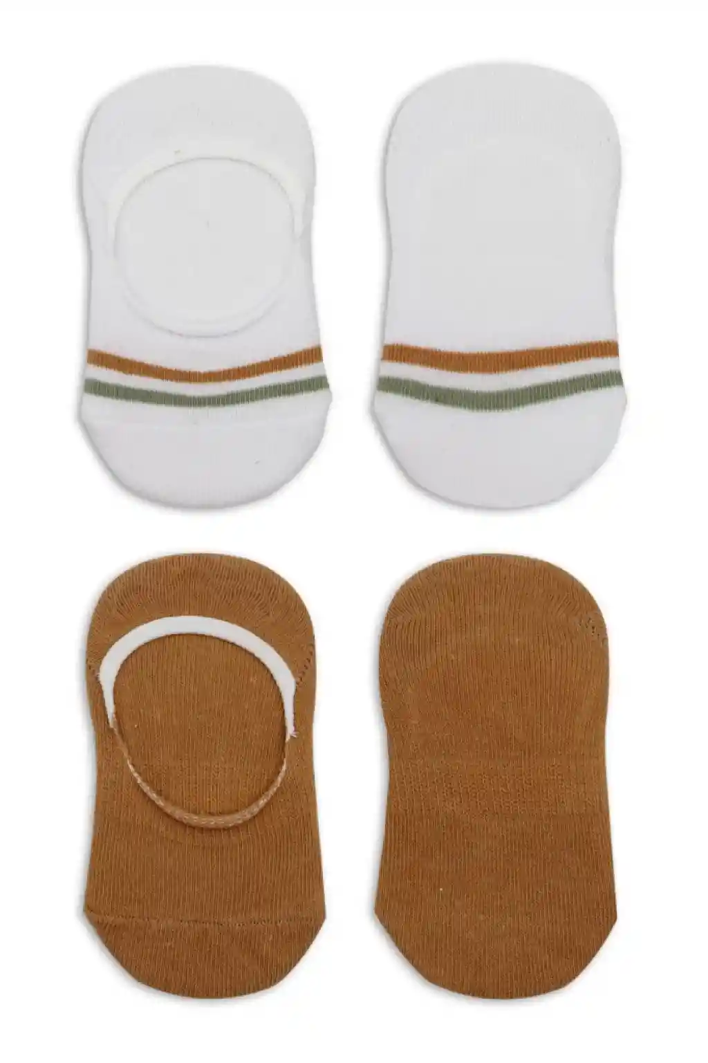 • NessiWorld 2'Li Penye Babet Silikon Çemberli Çorap 30102 Hardal Beyaz