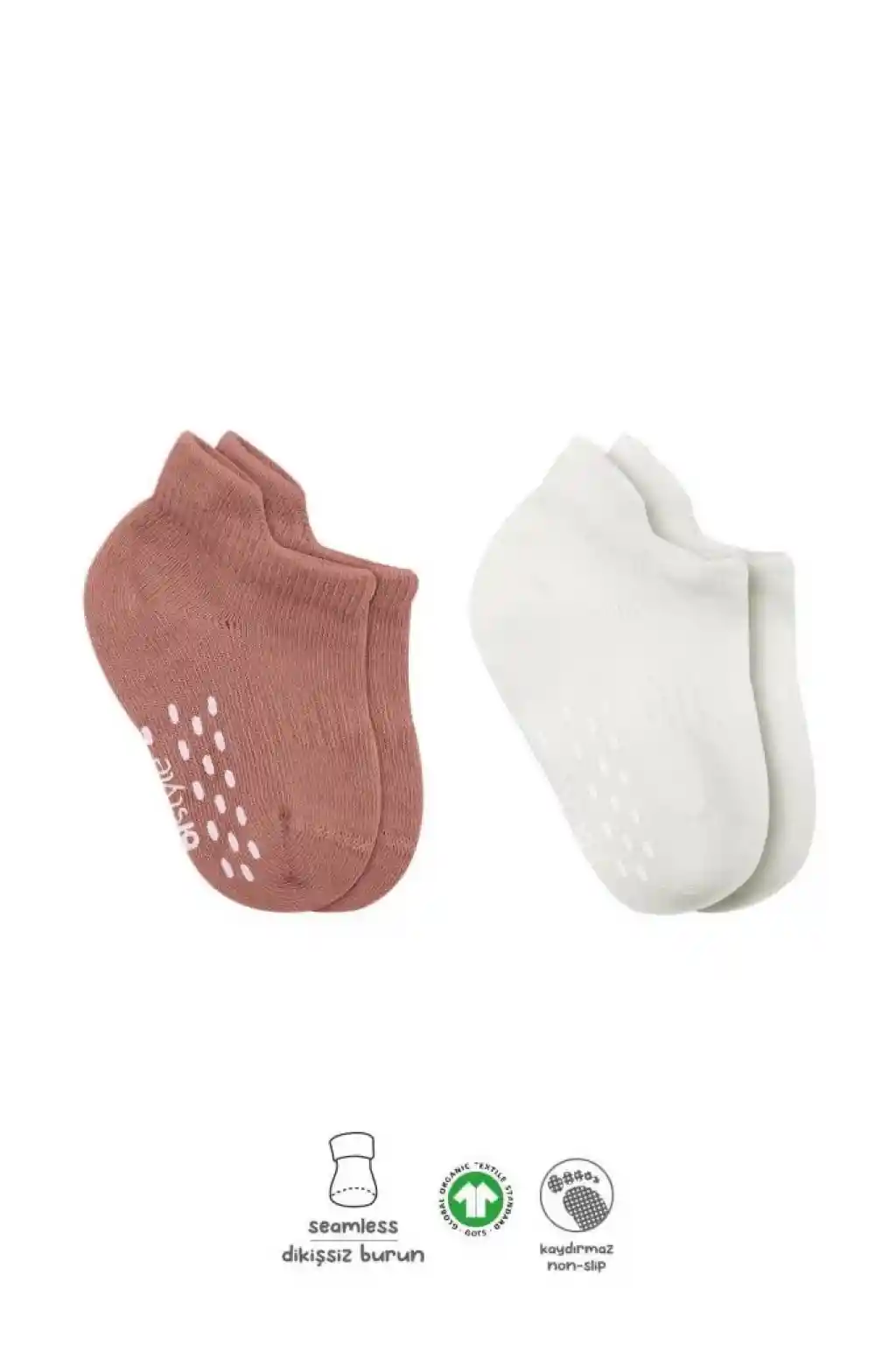 2'Li Sneakers Kaymaz Colours Penye Çorap 20104 Ekru Pudra