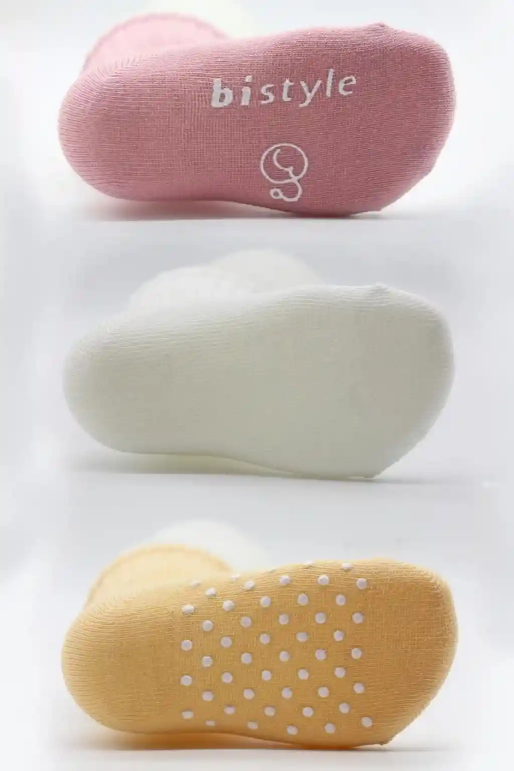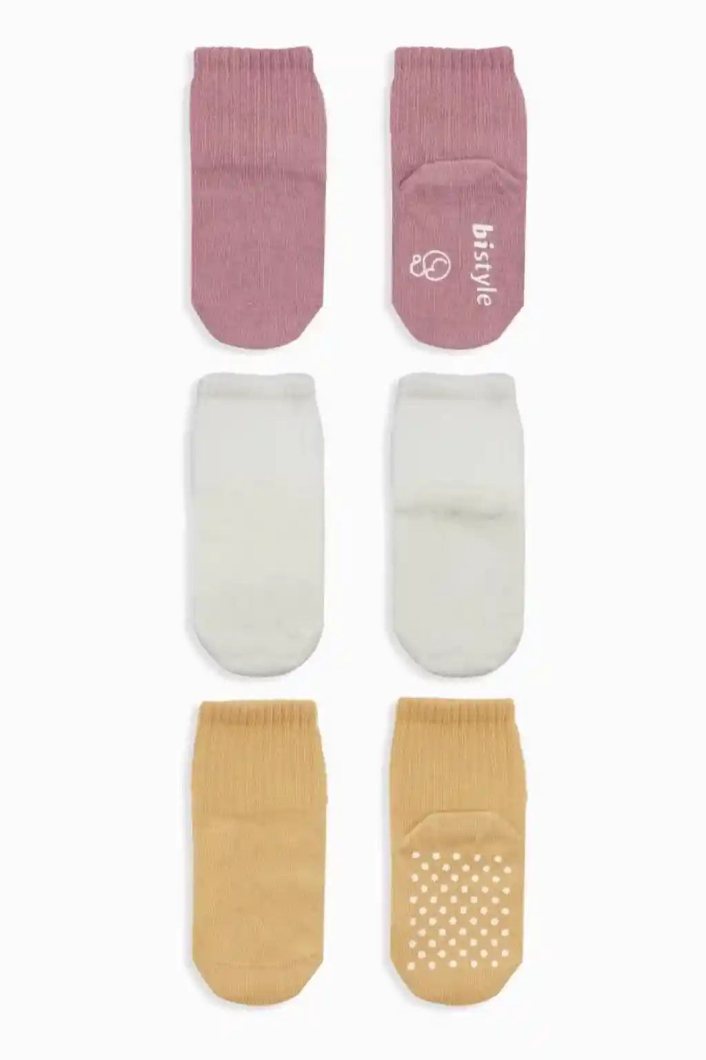 • NessiWorld Basic Kaymaz Penye Soket Çorap 3'Lü BS10106 Pudra Ekru Somon