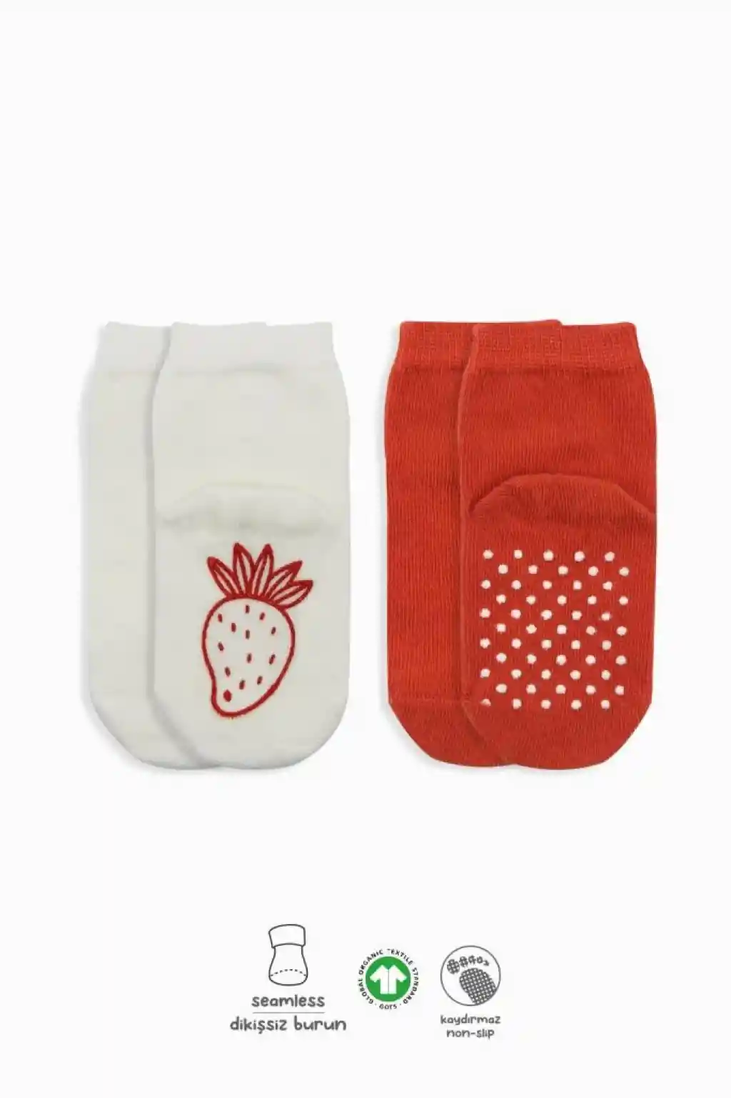 • NessiWorld Meyve Figürlü Kaymaz Soket Çorap 2'Li BS10105 Kırmızı Ekru