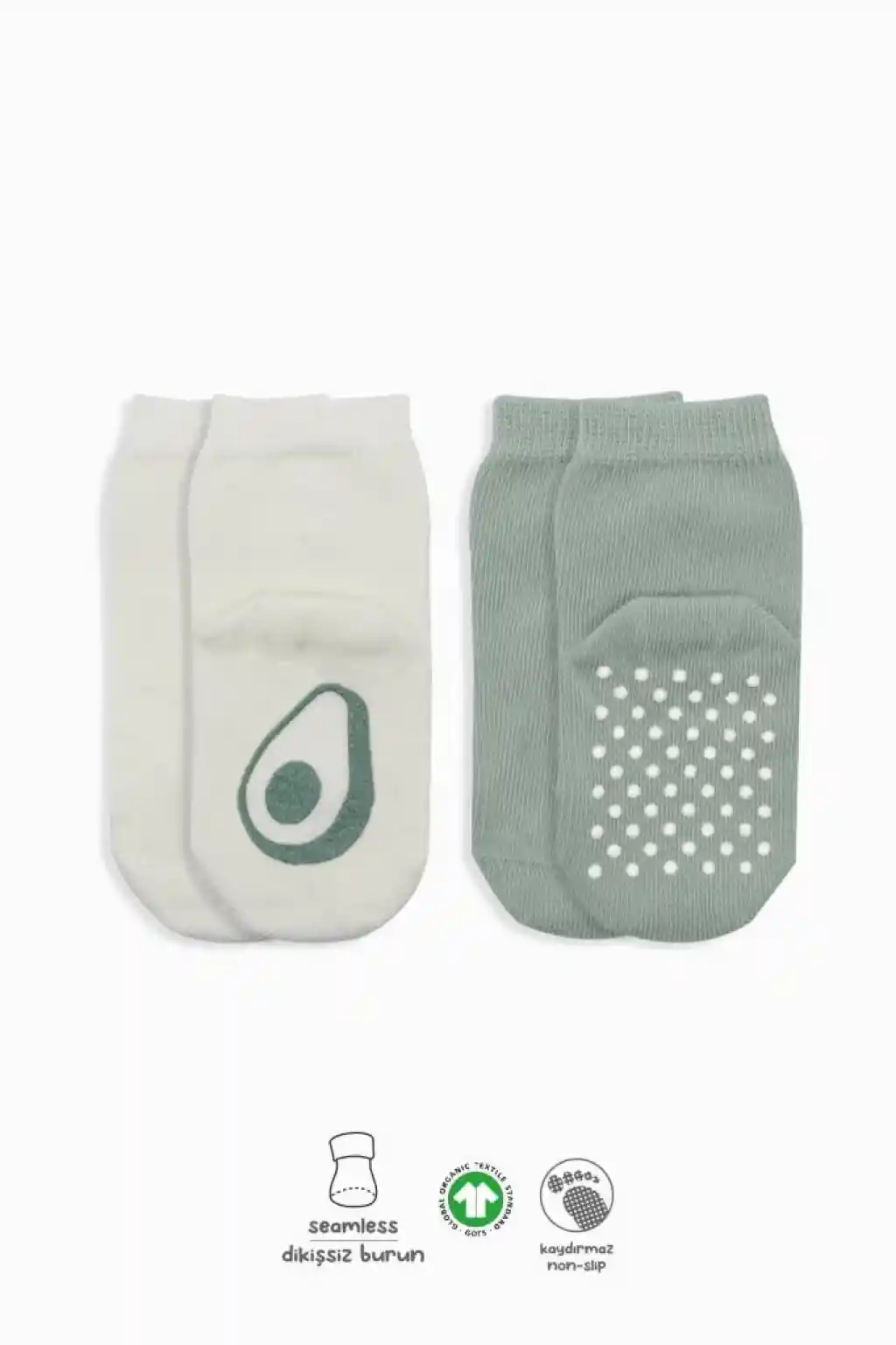 NessiWorld Meyve Figürlü Kaymaz Soket Çorap 2'Li BS10105 Nil Ekru