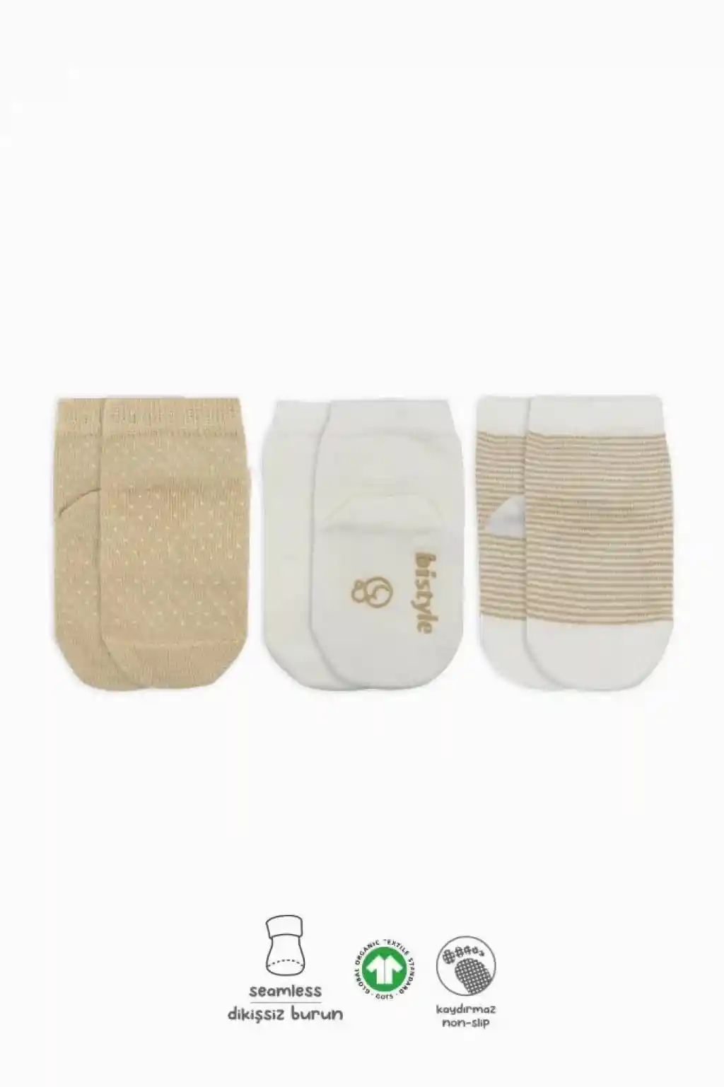 NessiWorld Puanlı Kaymaz Penye Soket Çorap 3'Lü BS10108 Bej