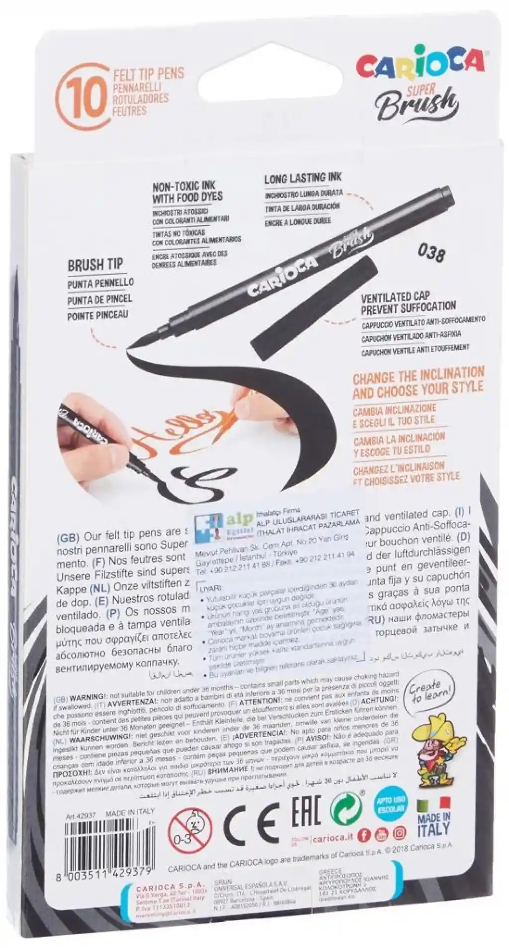 • Carioca Süper Brush Keçeli Boya Kalemi 10lu
