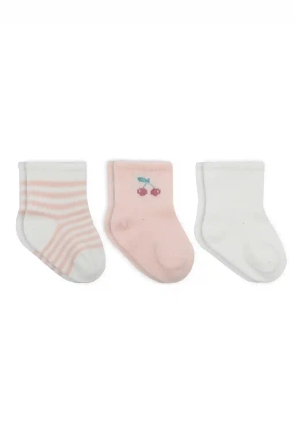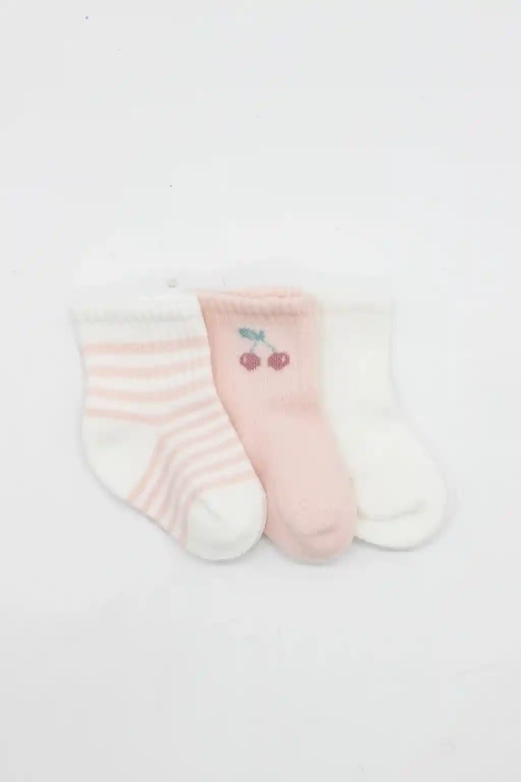 Cherry Girl 3'lü Penye Soket Çorap 10138 Ekru