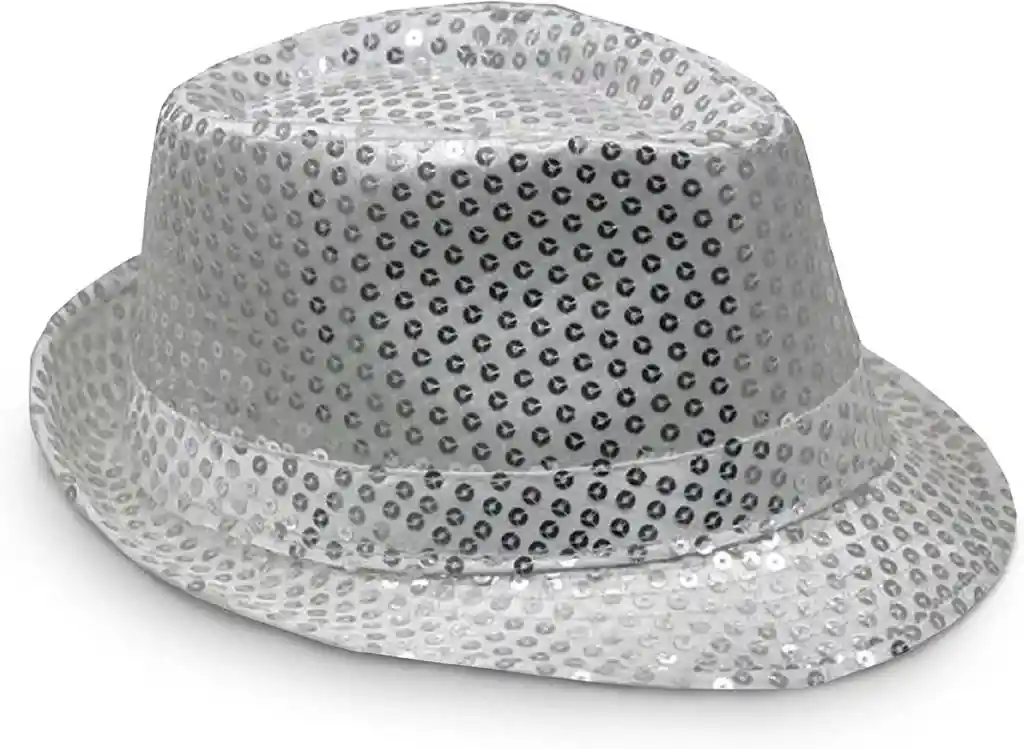 • Disko Star Gümüş Payetli Fötr Şapka Yetişkin Boy