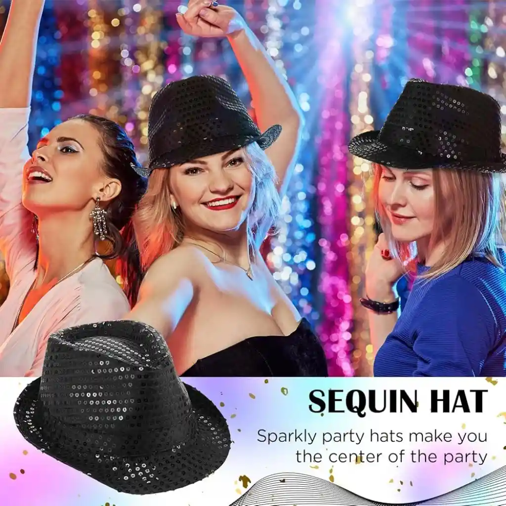 Disko Star Siyah Payetli Fötr Şapka Yetişkin Boy