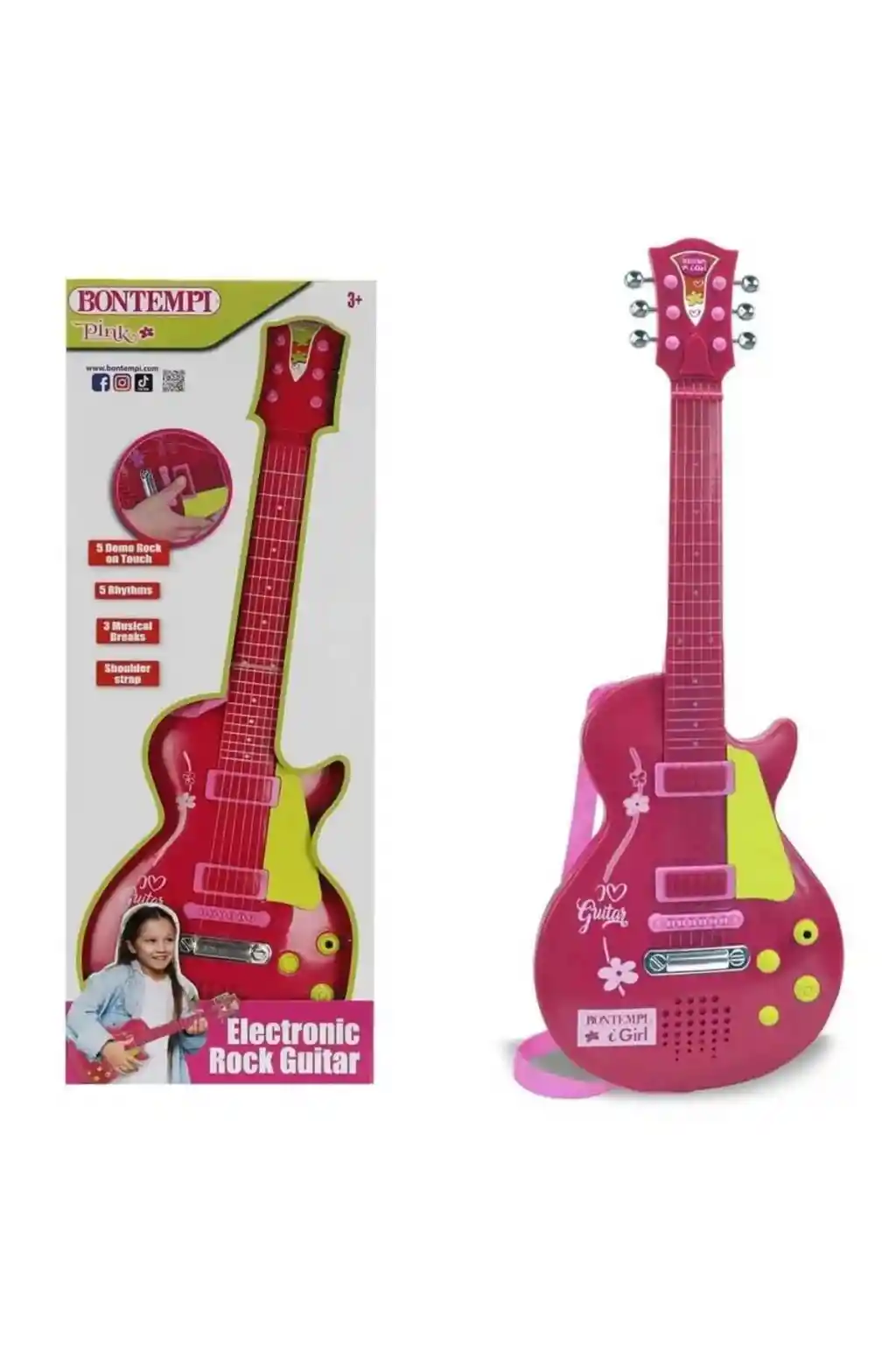 Elektronik Ayaklı Mikrofonlu Pembe Gitar