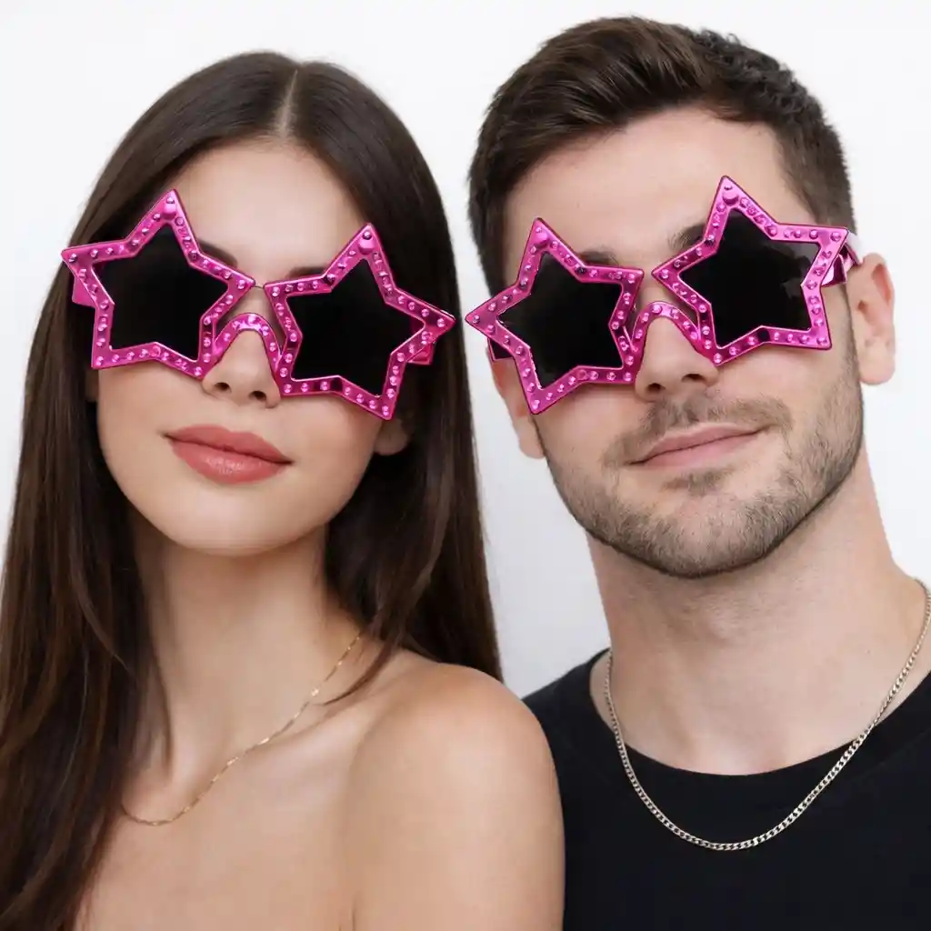 Fuşya Renk Disko Yıldızı Parti Gözlüğü 16X7 cm