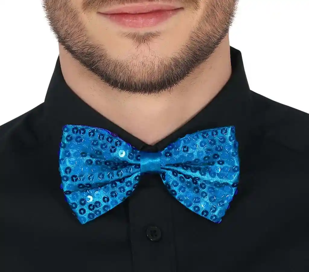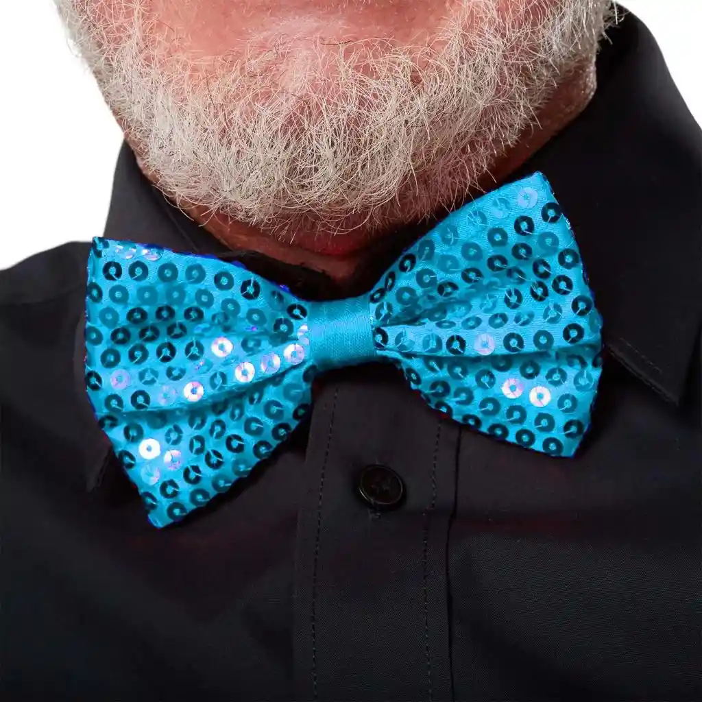 • Gece Işıltısı Açık Mavi Turkuaz Payetli Pullu Papyon 7x2 cm