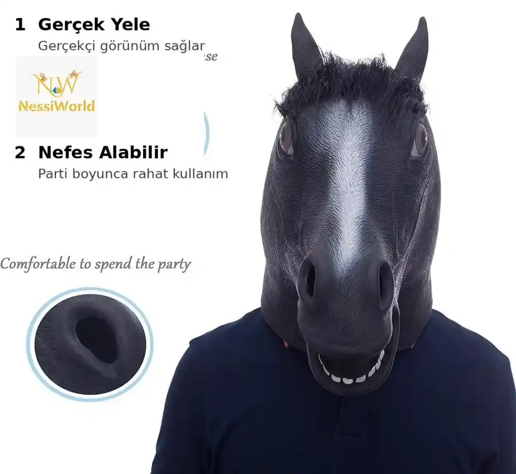 Gerçekçi At Kafası Maskesi Siyah Renk