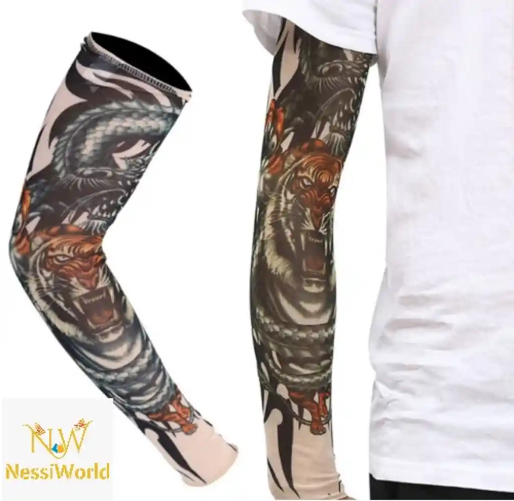 Giyilebilir Kol Dövmesi Çorap Dövme 3D Baskılı Kol Bacak Dövme 2 Adet Model 3