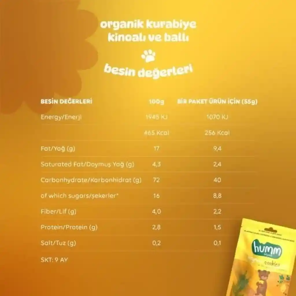 Organik Ballı ve Kinoalı Kurabiye 55 Gr