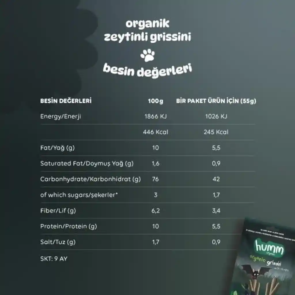 Humm Organik Vegan Zeytinli Grissini 55 Gr