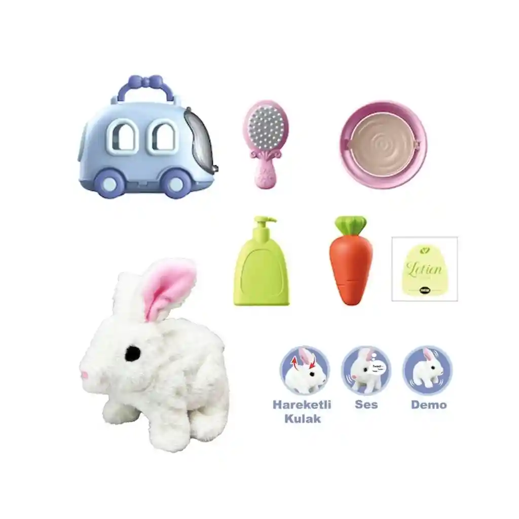 JND-6800 Taşıma Araba Çantalı Hareketli Pilli Tavşan Set -Vardem Oyuncak