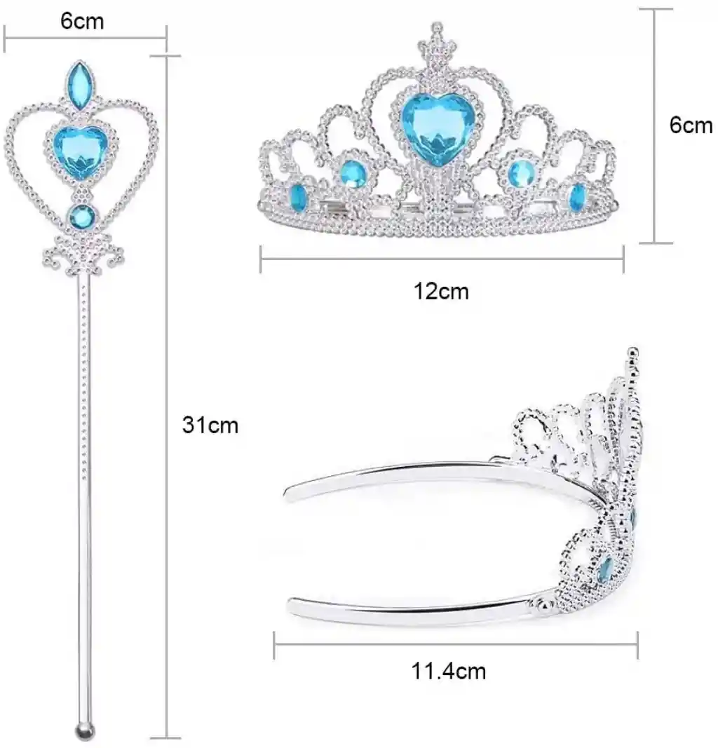 • Karlar Ülkesi Elsa Mavi Kalpli Taç ve Mavi Asa Seti Çocuk Boy