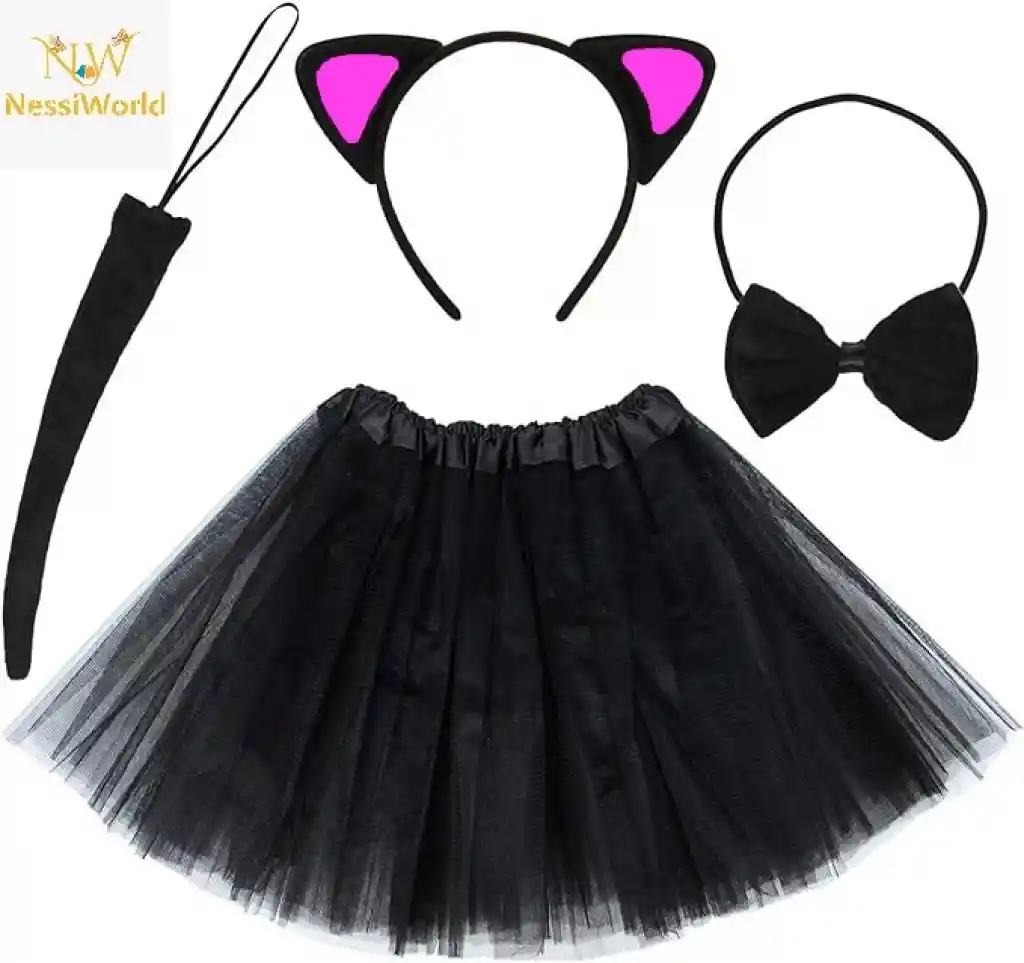 Kedi Kulak Taç Etek Kuyruk ve Papyon 4 lü Set Çocuk Fuşya