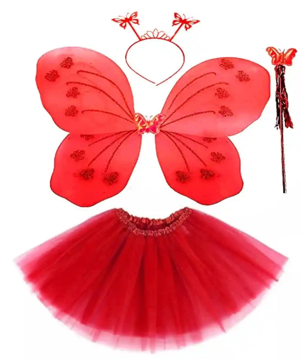 • Kırmızı Kelebek Kostümü - Kırmızı Kelebek Kostüm ANessiWorldesuar Seti 4 Parça