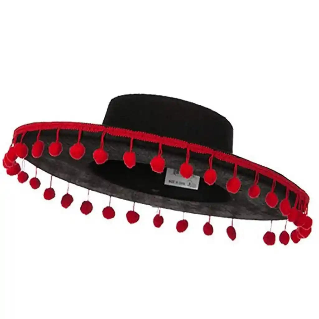 • Kırmızı Ponponlu Siyah Renk Çocuk İspanyol Şapkası